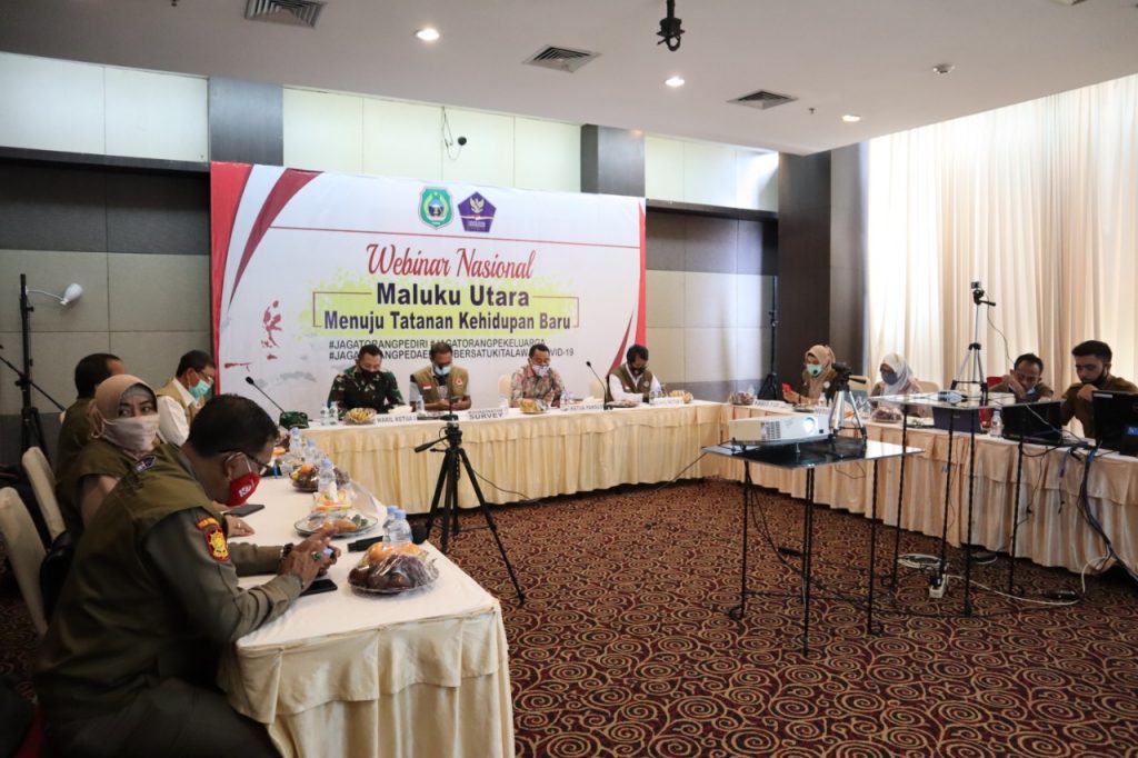 Sekadar diketahui, webinar nasional dengan tema Maluku Utara Menuju Tatanan Kehidupan Baru itu dilakukan melalui zoom meeting dengan melibatkan Sekprov Malut, Anggota DPRD, Unsur Forkopimda Malut, Ketua dan Pengurus Gugus Tugas Prov Kabupaten/Kota, para Kepala Kantor Instansi Vertikal, para Rektor dan Akademisi, Ketua Organisasi keagamaan.