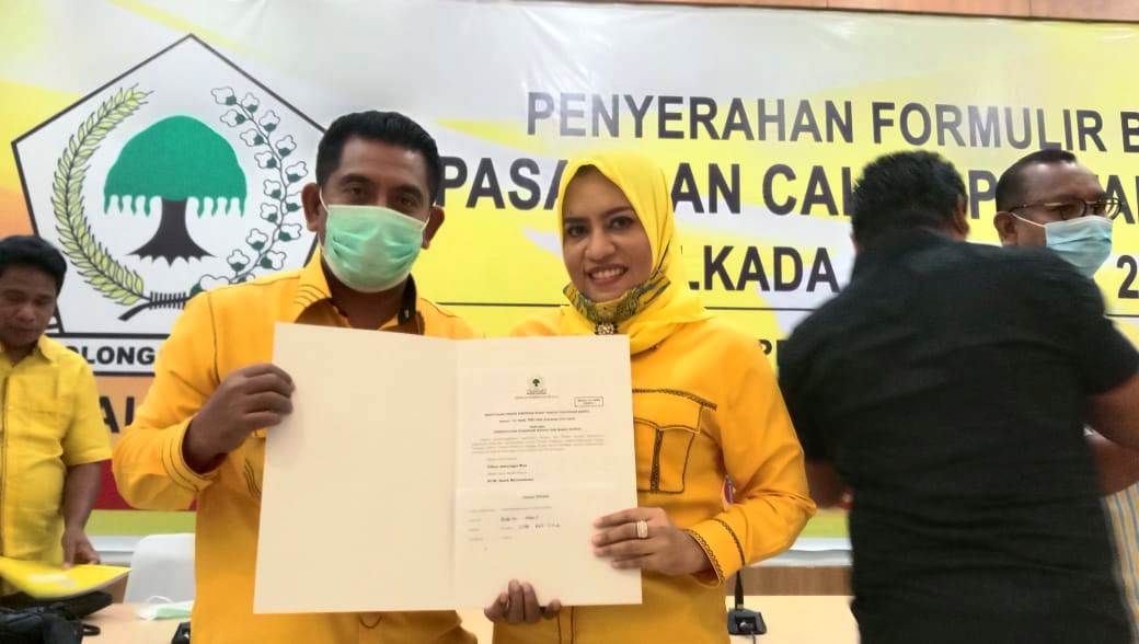 Tandaseru — Dewan Pimpinan Pusat Partai Golongan Karya resmi menyerahkan Surat Keputusan (SK) form B1.KWK kepada pasangan calon bupati dan wakil bupati Kepulauan Sula, Maluku Utara, Fifian Adeningsih Mus dan Saleh Marasabessy (FAM-SAH). SK Nomor 125/DPP/GOLKAR/VIII/2020 itu ditandatangani Ketua Umum Partai Golkar Airlangga Hartarto dan Sekretaris Jenderal Lodewijk F. Paulus tanggal 28 Agustus 2020.