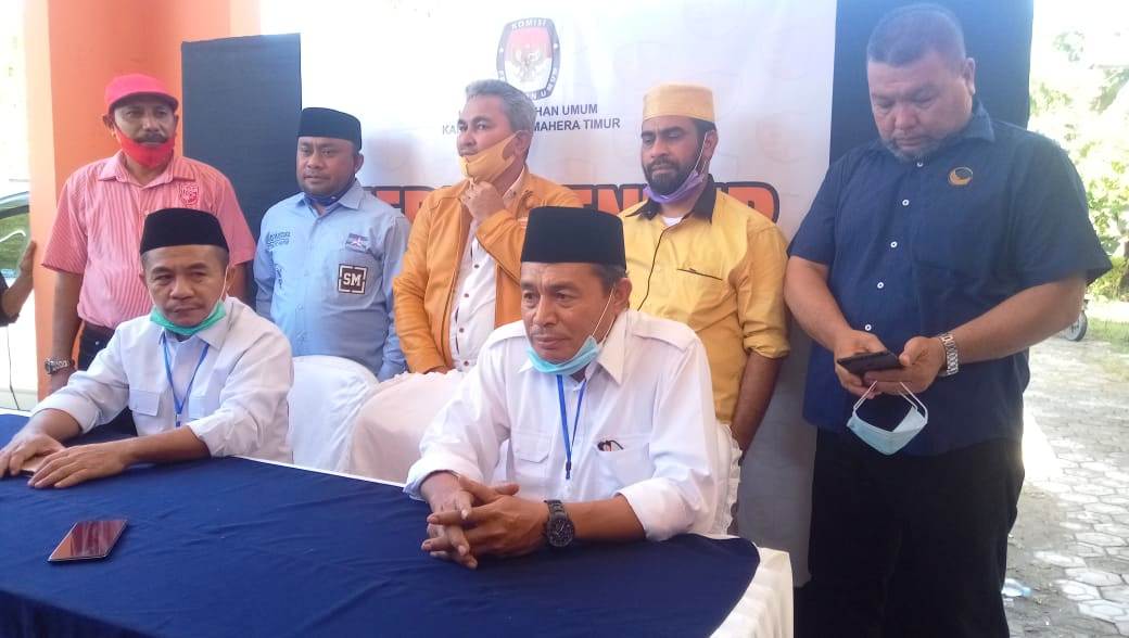 Tandaseru — Pasangan calon bupati dan wakil bupati Halmahera Timur, Maluku Utara, Muh Din Ma’bud dan Anjas Taher menjadi pasangan pertama di Pilkada Haltim yang mendaftar ke Komisi Pemilihan Umum, Jumat (4/9). Usai mendaftar, paslon yang diusung lima partai politik ini langsung nyatakan sikap menang Pilkada.
