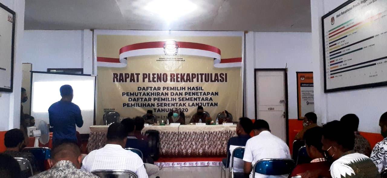 Tandaseru — Komisi Pemilihan Umum (KPU) Kabupaten Kepulauan Sula menggelar rapat pleno rekapitulasi Daftar Pemilih Hasil Pemutakhiran (DPHP) dan penetapan Daftar Pemilih Sementara (DPS) Pilkada 2020, Senin (7/9). Rapat digelar di kantor KPU Kepulauan Sula Desa Pohea, Kecamatan Sanana Utara, Kepulauan Sula, Maluku Utara.