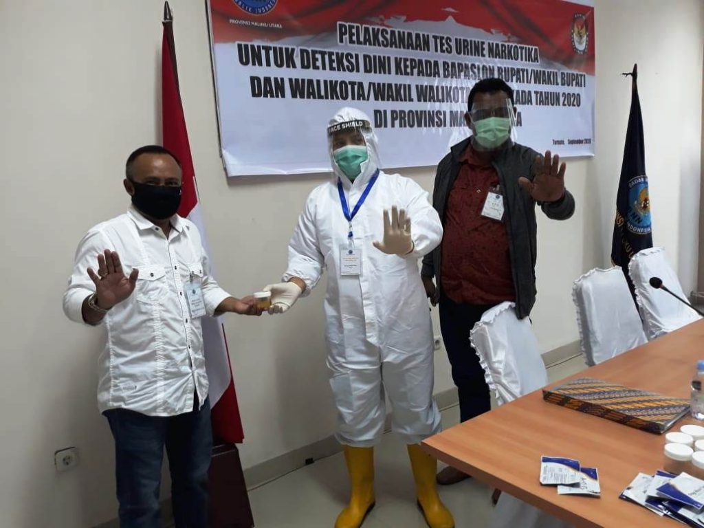 Tandaseru — Pasangan calon wali kota dan wakil wali kota Ternate, M. Hasan Bay dan M. Asghar Saleh tuntas mengikuti tes urine di Badan Narkotika Nasional (BNN) Provinsi Maluku Utara, Rabu (9/9). Keduanya dites narkotika setelah dinyatakan negatif Covid-19 dalam swab test.