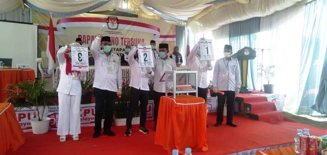 Setelah pencabutan, ketiga pasangan calon diminta mengangkat nomor urutnya masing-masing. Rupanya, nomor urut Fifian ditampilkan terbalik dan membentuk huruf ‘E’.