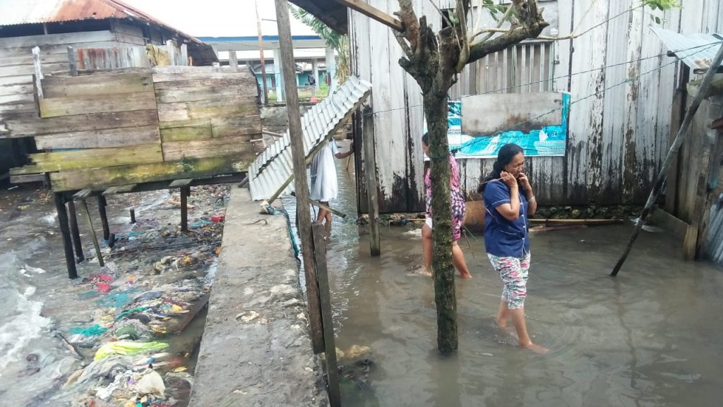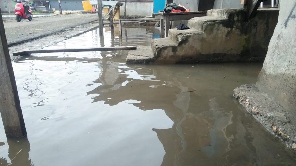 “Sehingga jalan raya juga sudah terendam air laut,” terangnya.