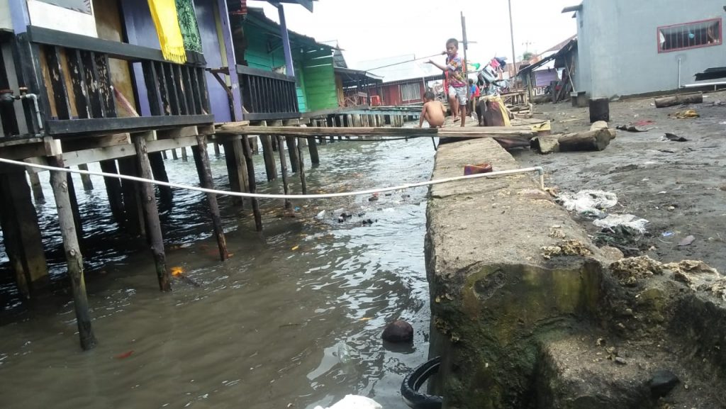 Masuknya air pasang ke rumah warga juga disebabkan rendahnya talud penahan ombak. Akibatnya, sejumlah dapur dan WC rumah warga mengalami kerusakan.