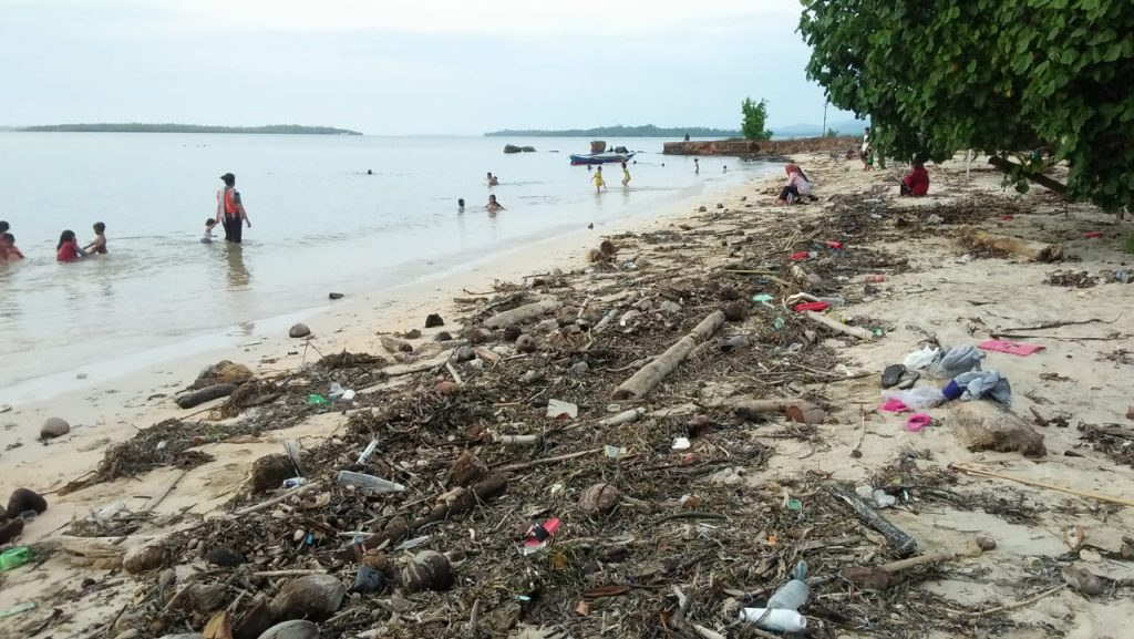 “Sampah banyak sekali, ini sudah dua minggu belum ada petugas yang membersihkan. Biasanya ada. Saya punya anak bermain di pantai juga takut, karena banyak kayu dan bambu makanya takut kena iris di kaki,” ungkapnya.