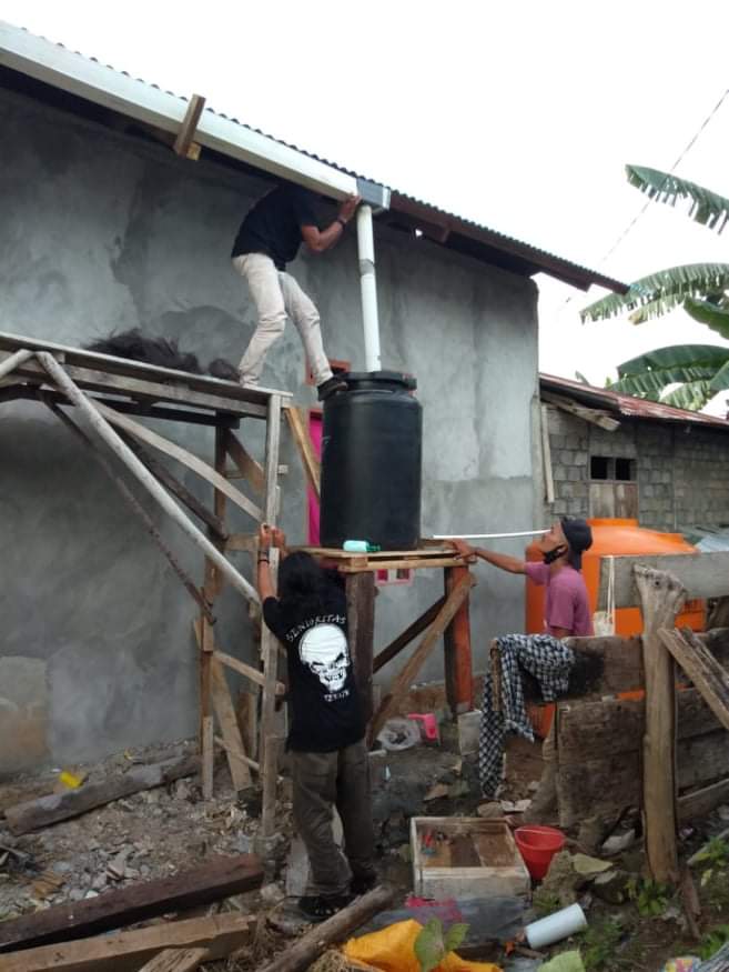 “Tahapan persiapan, desain wadah penangkap air hujan, desain tempat penampungan air, pengaliran filtrasi awal penyimpanan air, pemurnian dan setelah alat filtrasi dibuat dilakukan pengujian laboratorium untuk mengetahui baku mutu lingkungan yang layak,” jelasnya.