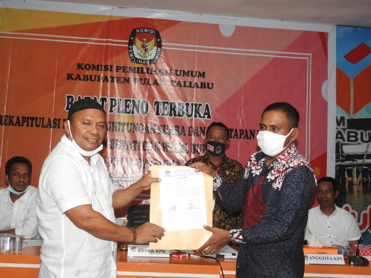 Penetapan ini dilakukan dalam rapat pleno terbuka rekapitulasi hasil penghitungan suara dan penetapan hasil Pemilihan Kepala Daerah Taliabu, Selasa (15/12).