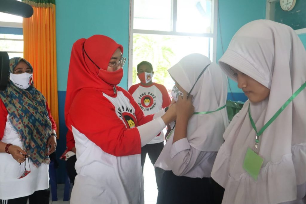 “Alhamdulillah, masker jenis kain dan medis telah diberikan ke beberapa sekolah dan diterima langsung oleh masing-masing kepala sekolah,” tuturnya.