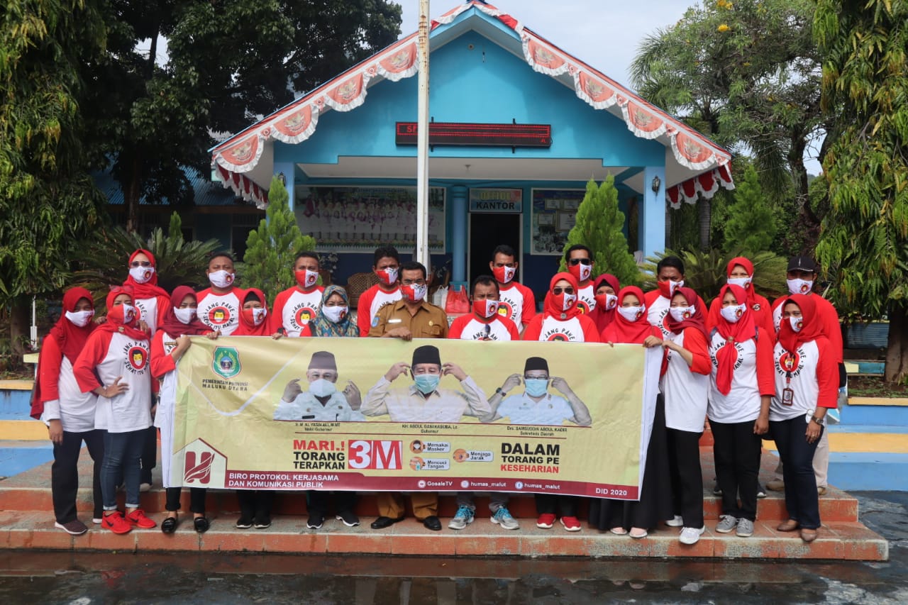 Tandaseru — Dalam rangka memberikan edukasi terhadap bahaya penularan Covid-19 di Kota Ternate, Biro Protokol, Kerjasama dan Komunikasi Publik Pemerintah Provinsi Maluku Utara, Selasa (15/12) mendatangi beberapa sekolah di Ternate. Kedatangan ini untuk mensosialisasikan sekaligus menyerahkan bantuan sebanyak 250 masker.