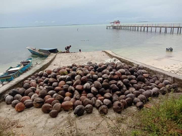 Kelapa-kelapa tersebut, kata Achmad, sudah dikumpulkan warga Galo-galo menggunakan perahu. Saat ini hasil panen itu diamankan di tepi pantai.