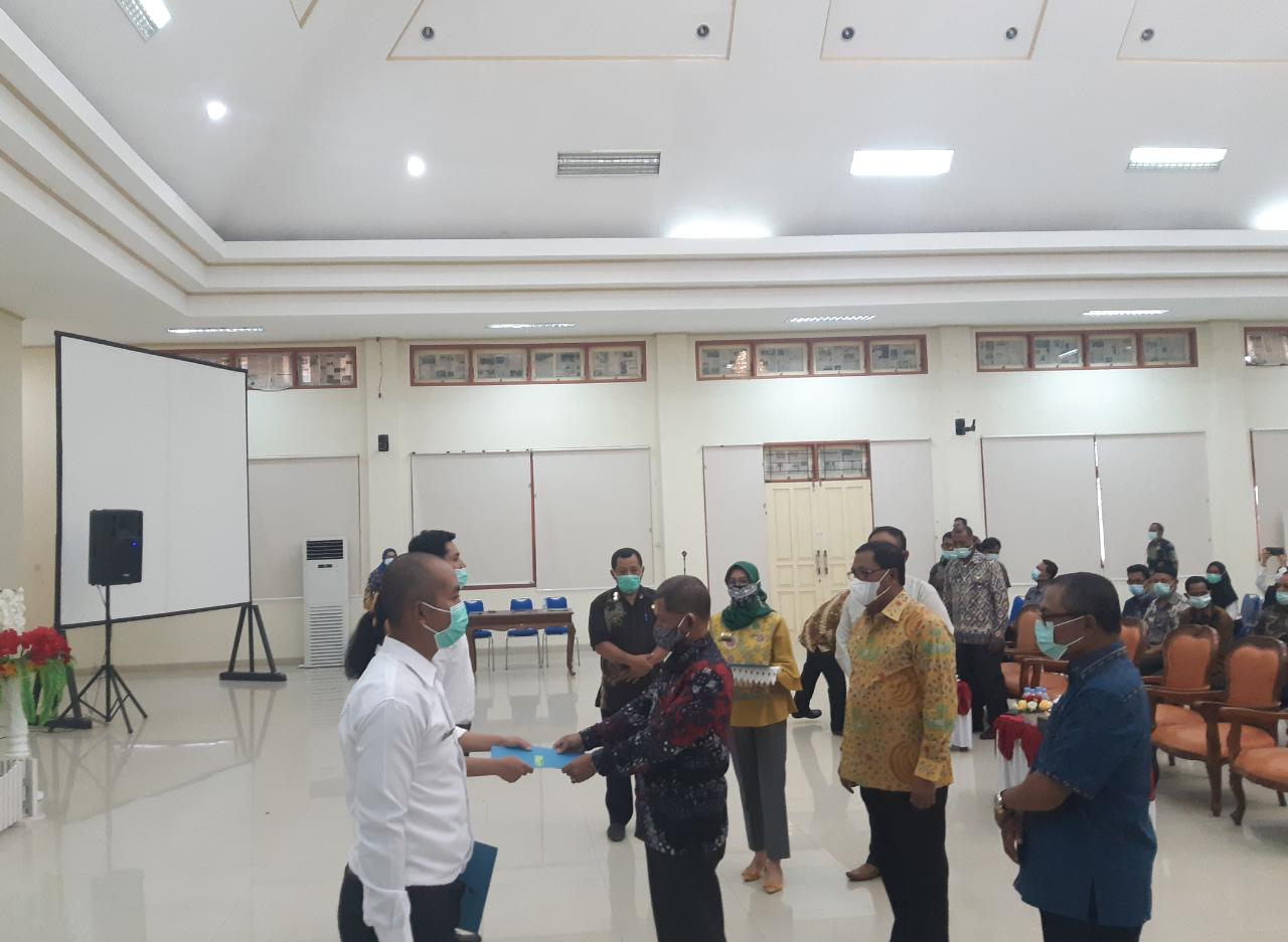 Penyerahan dipusatkan di aula Kantor Bupati. SK 80 persen itu sendiri bernomor 823.3/01/2020 sampai dengan 823.2/107/2020.