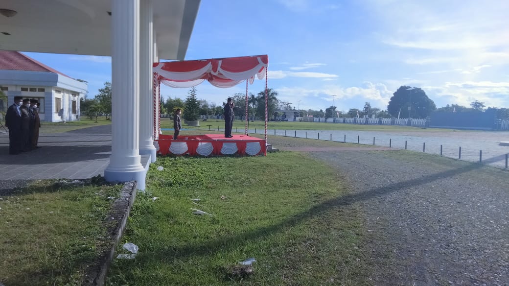 Tandaseru — Bupati Kabupaten Halmahera Timur, Maluku Utara, Ubaid Yakub memimpin apel perdana jajaran pemerintah daerah di halaman Kantor Bupati, Senin (1/3). Dalam arahannya, Ubaid meminta seluruh pegawai menjaga kedisiplinan.