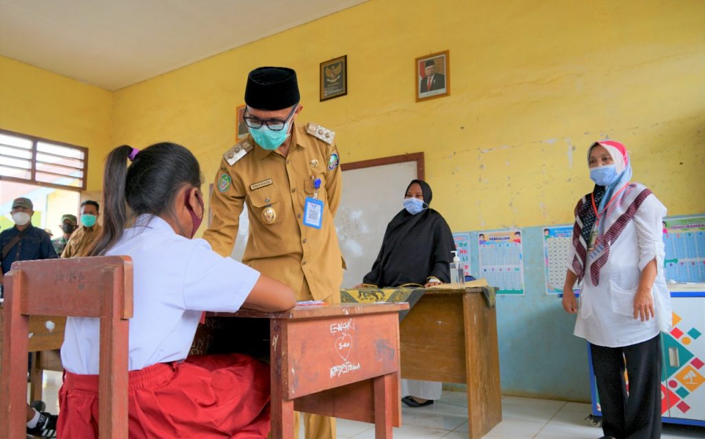 Pada kunjungan kerjanya, Iswan juga menyempatkan diri untuk menyapa para pelajar SDN 217 Halsel di Desa Kawasi yang sedang mengikuti ujian akhir. Ia memberi semangat kepada anak-anak yang bersekolah dengan penerapan protokol kesehatan itu.