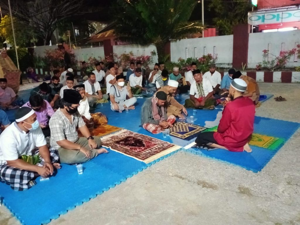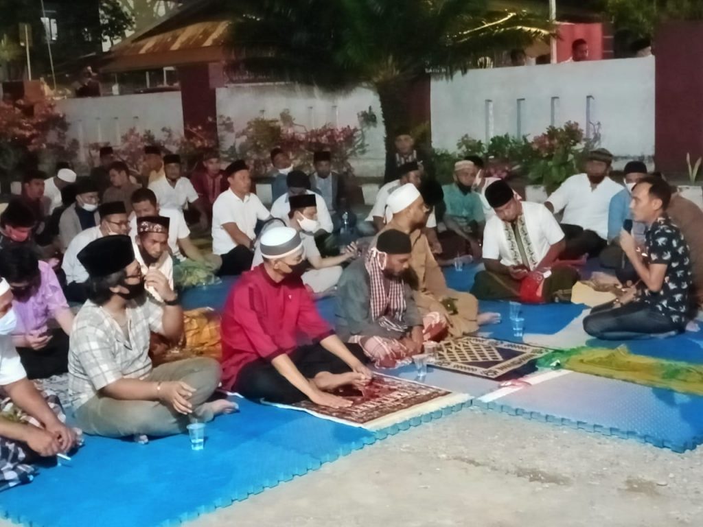 Tandaseru — Pengurus sejumlah organisasi kemasyarakatan dan partai politik menggelar salat Isya dan tarawih berjamaah di halaman Kantor Kejaksaan Negeri Pulau Morotai, Provinsi Maluku Utara, Sabtu (24/4) malam.