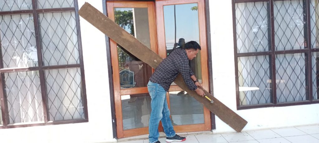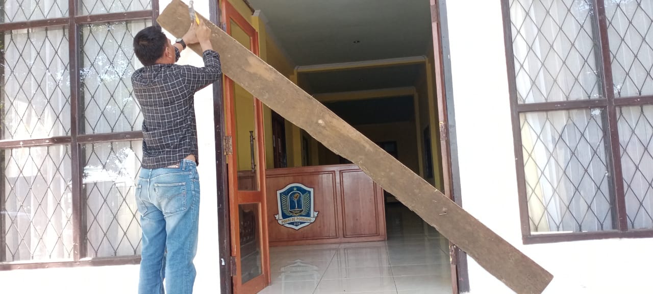 Pantauan tandaseru.com, sekira pukul 13.10 WIT Ketua Fraksi GAN, Ruslan Ahmad, memalang pintu depan kantor DPRD dengan sebilah papan. Papan tersebut dipaku ke pintu untuk menghalangi orang keluar masuk.