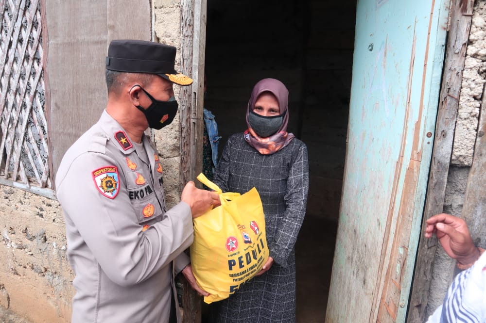 Tandaseru — Polda Maluku Utara kembali menggandeng organisasi Cipayung dalam kegiatan penyaluran bantuan sosial (bansos) berupa bahan pokok untuk warga terdampak Covid-19 di Kota Ternate, Kamis (29/7).
