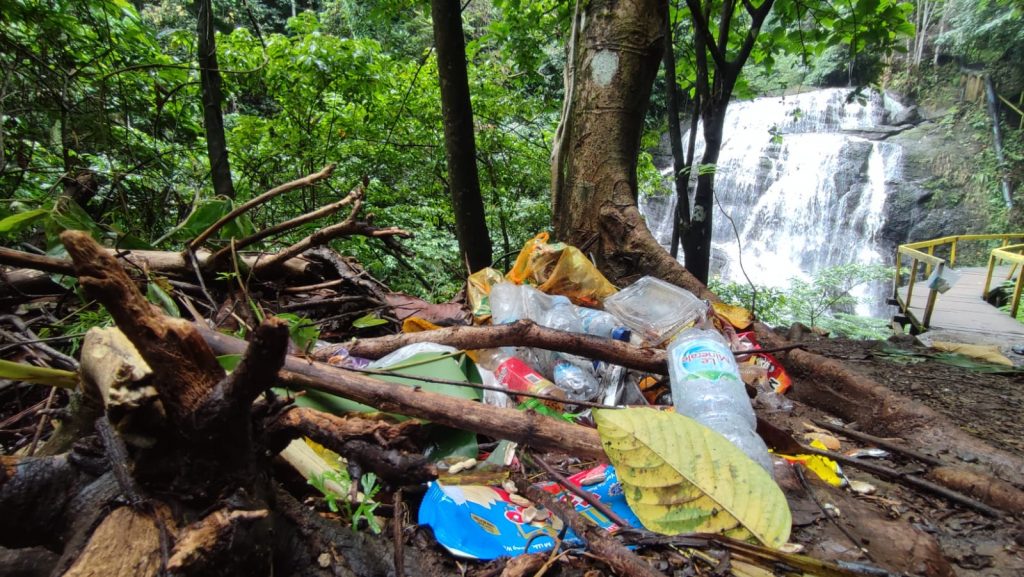 Sayang, beberapa pengunjung tak bertanggungjawab dan meninggalkan sampah plastik di sekitar lokasi air terjun.