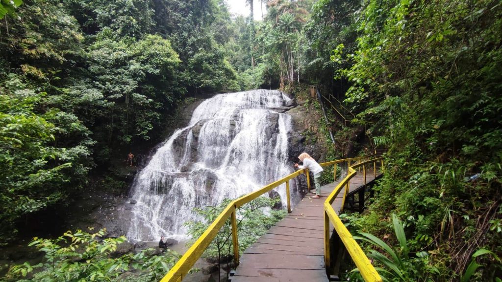 Ada jembatan dan tangga yang dibangun untuk memudahkan pengunjung menuju puncak air terjun.