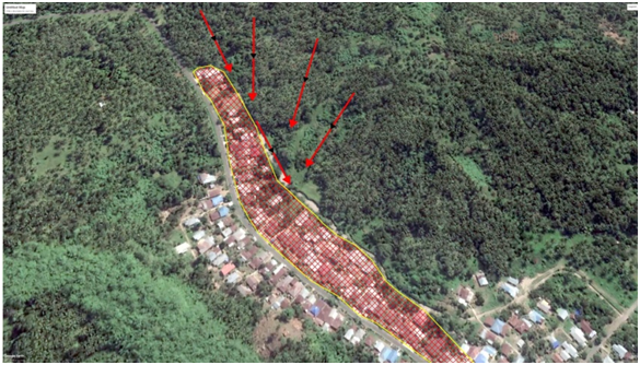“Diperkirakan, jika setiap satu kali banjir mengikis dinding tanah sebesar 5 cm maka apabila terjadi 20 kali banjir pengikisan tersebut akan mencapai 1 meter. Sedangkan hujan 30 menit saja daya banjir yang terjadi sudah sangat kuat. Bagaimana jika hujan deras terjadi dalam waktu lama? Atau hujan dengan intensitas tinggi terjadi terus menerus dalam kurun waktu 3-6 bulan? Jawabannya, tidak sampai 5 tahun ke depan separuh dari rumah warga Desa Balisoan Utara yang berada di bibir talut bekas galian akan hilang terbawa banjir,” tegas Agrist.
