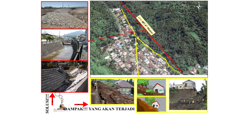 “Kami mengingatkan dan mendesak kepada pemerintah desa, pemerintah kecamatan maupun pemerintah kabupaten, dalam hal ini dinas-dinas terkait, agar segera melakukan upaya-upaya penanganan diantaranya penimbunan kembali untuk menutup ruang gerak air agar tidak semakin menggerus permukiman warga (garis warna kuning). Juga pada garis yang berwarna merah (talut) segera dibangun rap-rap atau dinding beton yang kuat sepanjang talut. Kami juga mengimbau kepada seluruh masyarakat agar tidak membuang sampah secara sembarangan, karena sampah yang terbawa banjir bisa menjadi sumber masalah baru,” imbuh Agrist.
