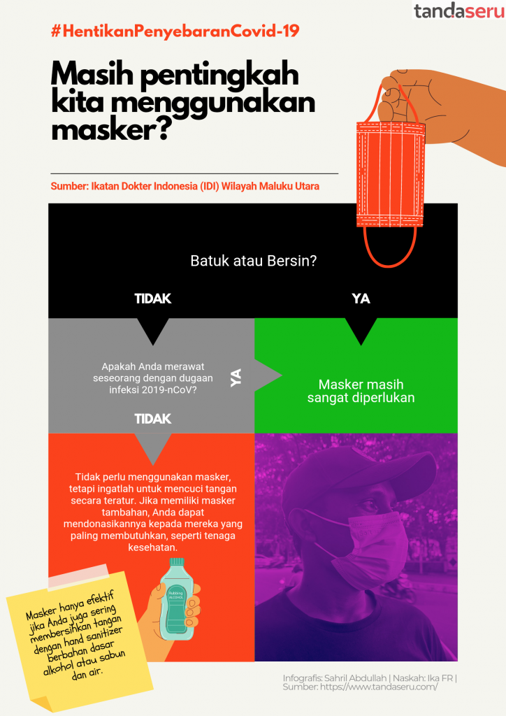 Ketua Ikatan Dokter Indonesia (IDI) Wilayah Maluku Utara, dr. Alwia Assagaf mengatakan, masker masih sangat diperlukan untuk digunakan saat ini.