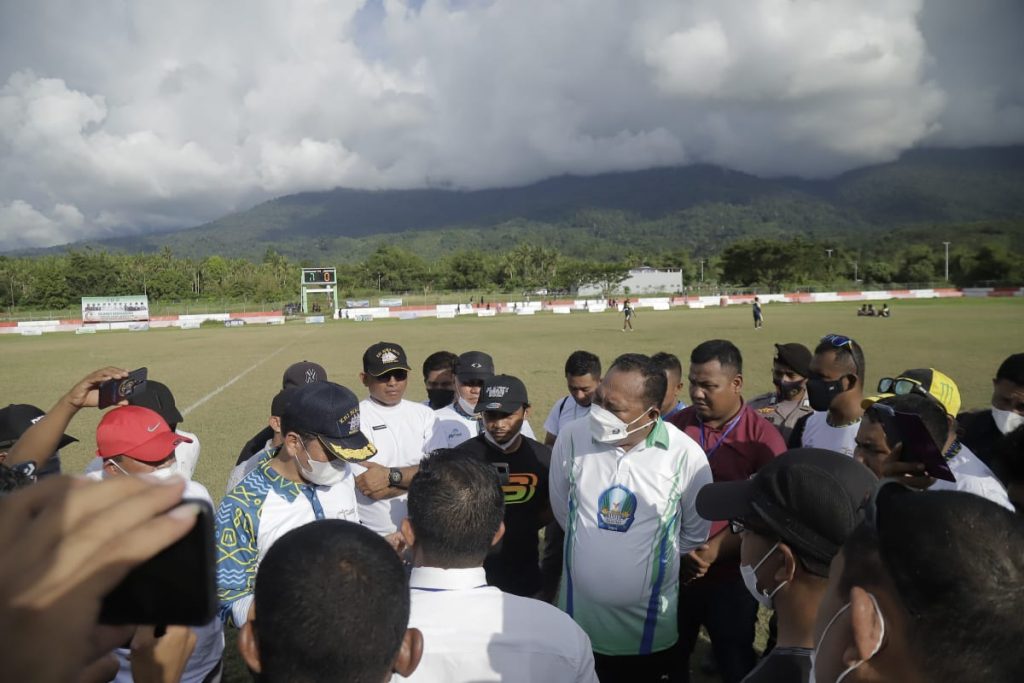 Amatan tandaseru.com, ketiga tim bersama suporternya tumpah ruah di stadion sore tadi. Tampak pula Bupati Halmahera Selatan Usman Sidik dan Bupati Pulau Morotai Benny Laos.