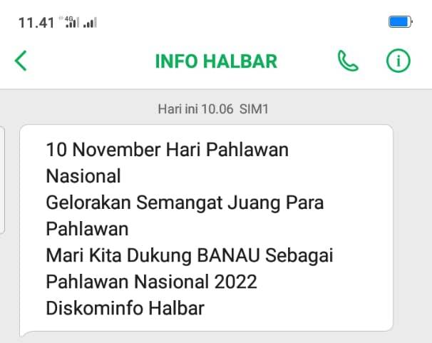 SMS tersebut berisi seruan dukungan terhadap Banau sebagai calon Pahlawan Nasional dari Halbar.