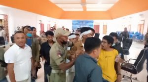 Tandaseru — Aktivis Hippmamoro Maluku Utara membanting meja dan kursi saat hearing soal sengketa lahan bersama anggota DPRD Pulau Morotai di ruang paripurna lantai ll, Senin (29/11).
