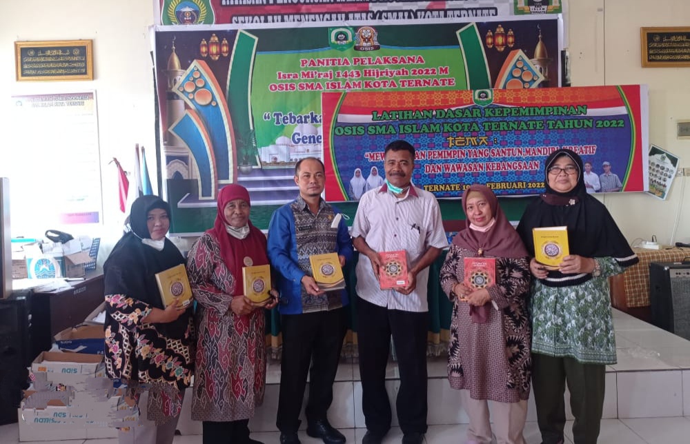 Penyerahan bantuan ini dilakukan dalam kegiatan perayaan Isra Mi’raj yang diselenggarakan pengurus OSIS SMA Islam Ternate.