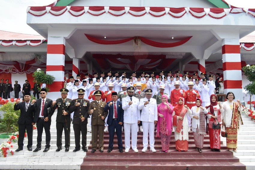 Peringatan detik-detik Proklamasi Kemerdekaan Republik Indonesia didahului suara sirene, dilanjutkan pembacaan teks Proklamasi oleh Ketua DPRD Muhlis Djafar.