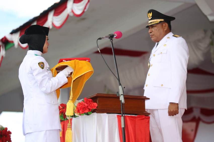 Tandaseru — Pemerintah Daerah Halmahera Selatan, Maluku Utara, menggelar upacara peringatan Kemerdekaan Republik Indonesia (RI) ke-77 tahun 2022, Rabu (17/8).