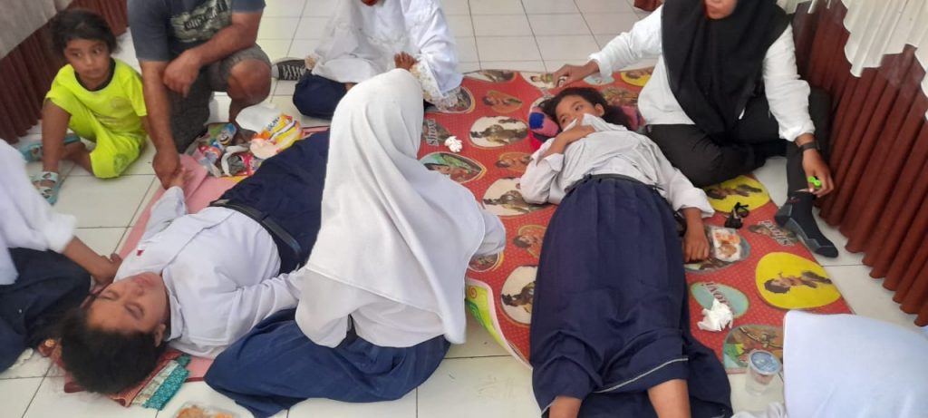 Dua siswi SMP jatuh pingsan karena terkena tembakan gas air mata polisi. Selain itu, 14 massa aksi diamankan Polres Morotai.