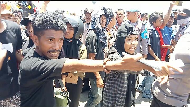 “Tara boleh bagitu. Tong so kase masuk di dalam kong ngoni bikin gerakan tambahan,” teriak salah satu anggota Satpol PP kepada massa aksi.