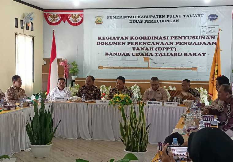 Tandaseru — Bupati Pulau Taliabu, Maluku Utara, Aliong Mus, membuka kegiatan koordinasi penyusunan dokumen perencanaan pengadaan tanah (DPPT) Bandar Udara Salahakan Ahmad Hidayat Mus (AHM) di Taliabu Barat, Kamis (1/12).