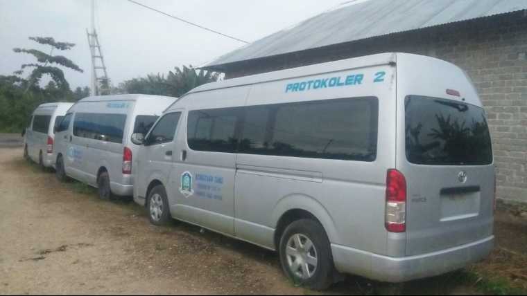 Amatan tandaseru.com, tiga mobil Toyota Hiace itu diketahui adalah mobil protokoler 02 dan 05. Sedangkan satu di antaranya mobil Dinas Kesehatan.