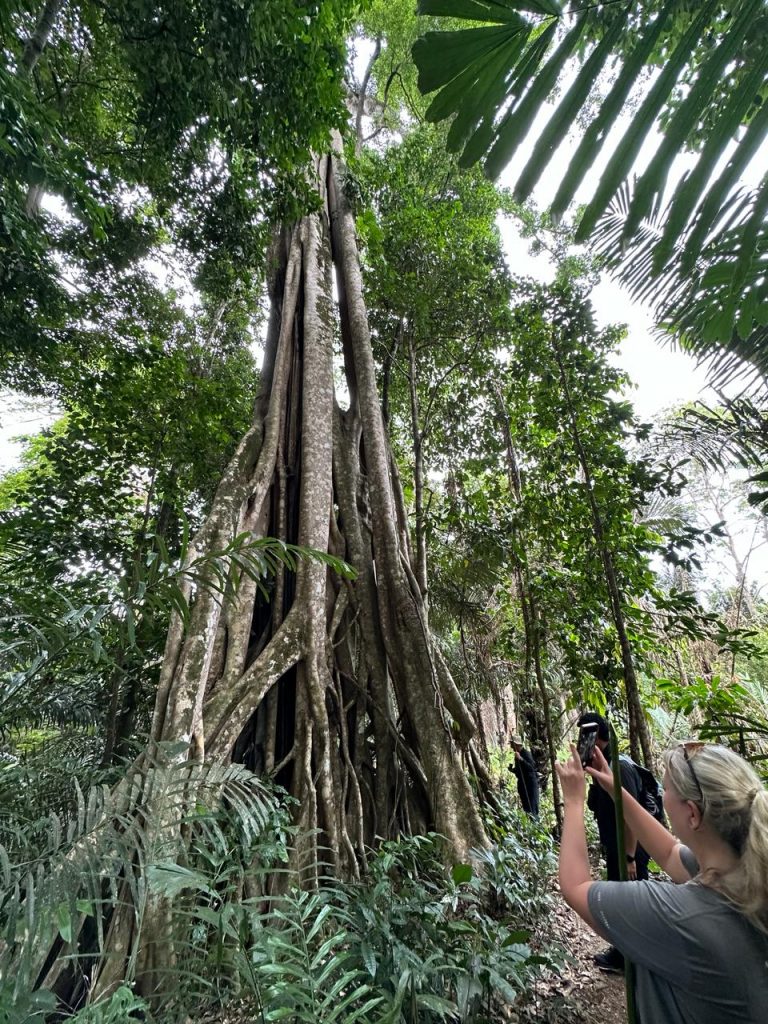 Tamu mengabadikan gambar pohon beringin di hutan lereng Gunung Sibela. (Tandaseru/Ika Fuji Rahayu)