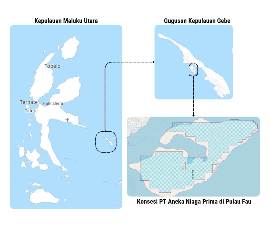 Kepala Divisi Advokasi dan Kampanye FOSHAL Julfikar Sangaji mengatakan, PT ANP memiliki izin konsesi lahan sebesar 459.66 hektare untuk kegiatan penambangan nikel. Luas konsesi tambang ini hampir mencaplok seluruh isi ruang darat Pulau Fau.