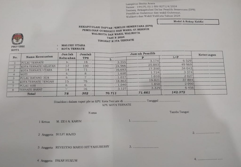 “Kami KPU Kota Ternate hanya mengolah data tersebut. Kalau pun ada nama-nama yang mungkin tidak dikenal kami dari pihak KPU tidak punya kewenangan untuk mengeluarkan dia, atau menghapus dalam hal ini me-TMS-kan dia,” pungkasnya.