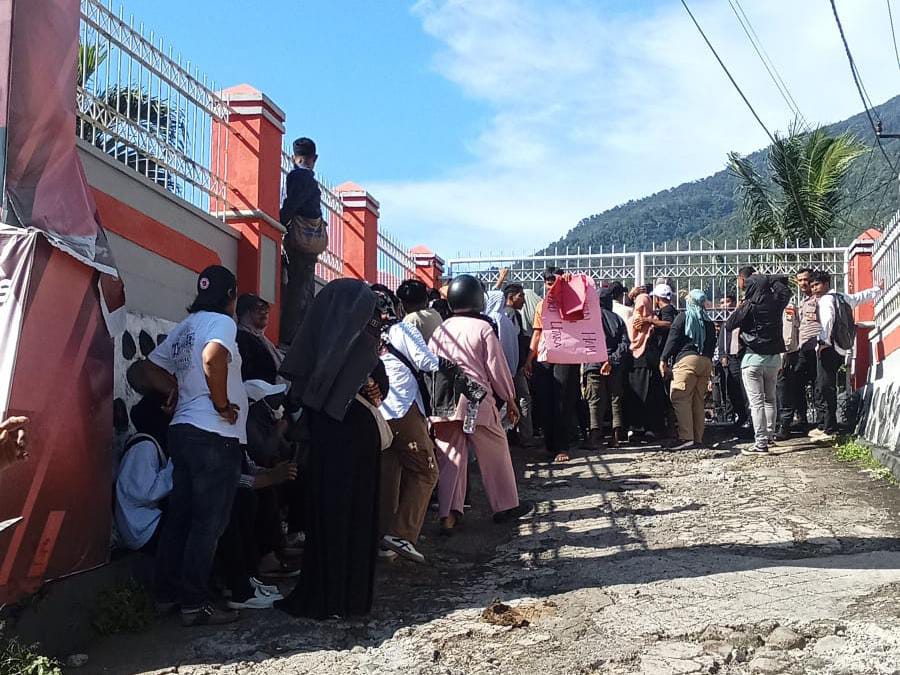 Tandaseru — Puluhan demonstran dari Aliansi Peduli Hak Asasi Manusia (HAM) menggeruduk Rutan Ternate, Kamis (19/12/2024).