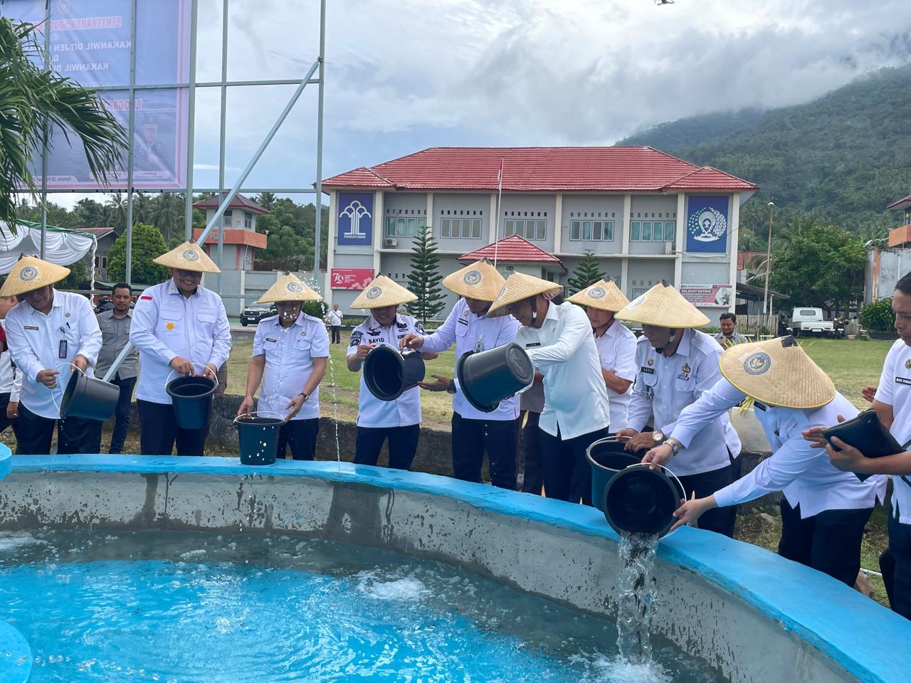 Tandaseru — Direktorat Jenderal (Ditjen) Pemasyarakatan dan Ditjen Imigrasi Provinsi Maluku Utara resmi menyerahkan ribuan bibit ikan ke Rutan Ternate.