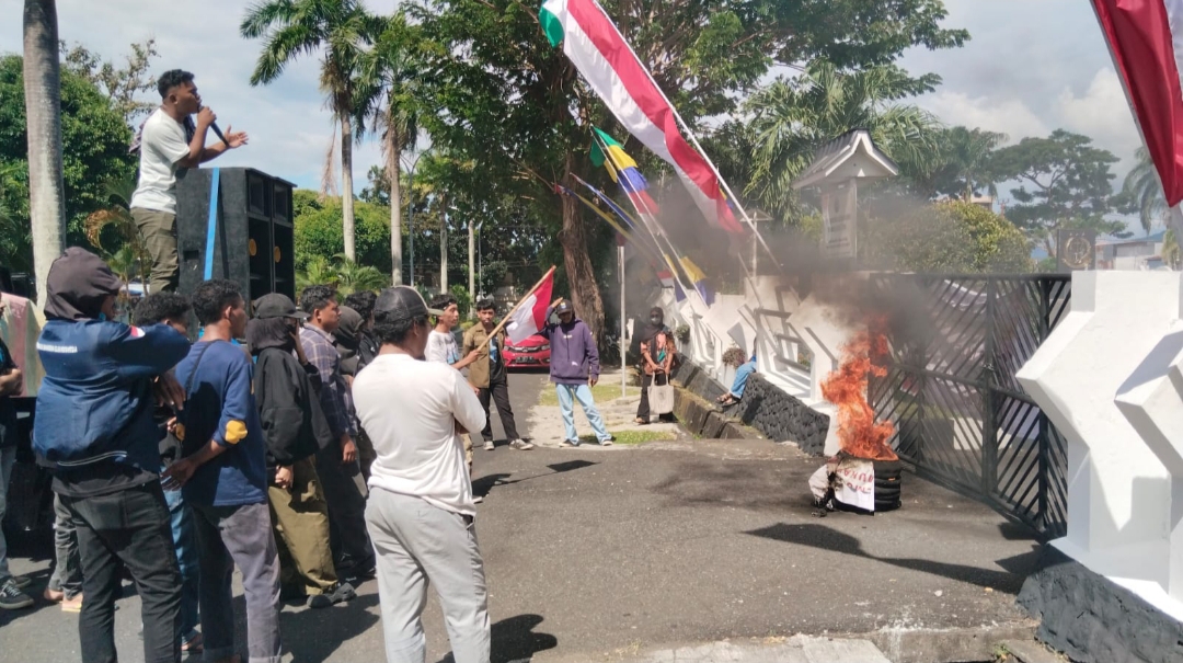Selain berorasi di depan Polda Maluku Utara, massa juga menggelar aksi lanjutan di depan Kejaksaan Tinggi Maluku Utara dan membakar ban bekas sebagai bentuk protes terhadap ketidakadilan.