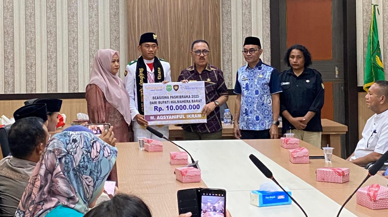 “Beasiswa yang diberikan sebesar kepada satu paski nasional Halbar ini sebesar Rp 10 juta ini adalah bentuk apresiasi dan juga kebanggaan kepada M. Aqsyahiful siswa dari SMA N 3 Halbar,” sambungnya.