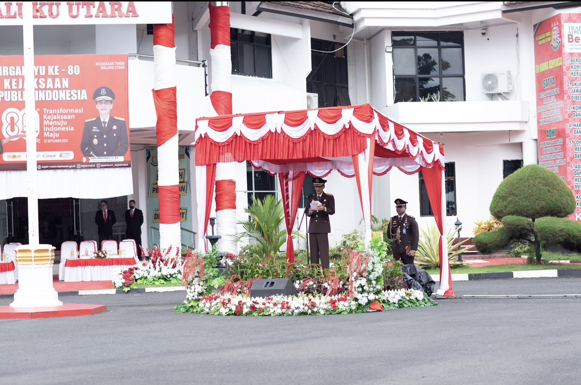 Tandaseru — Kepala Kejati Maluku Utara bersama seluruh jajaran mengucapkan selamat Dirgahayu Kejaksaan Republik Indonesia ke-80 tahun 2025, Selasa (2/9/2025).