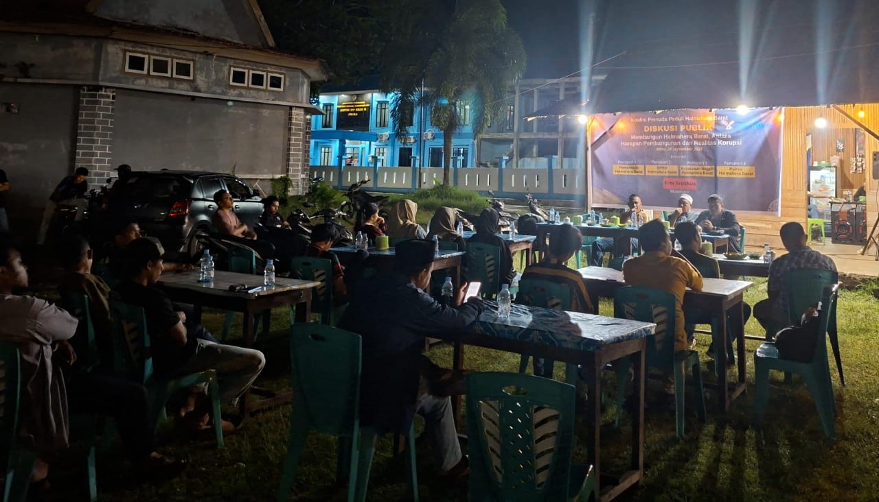Tandaseru — Koalisi Pemuda Peduli Halmahera Barat, Maluku Utara, menggelar diskusi publik, Rabu (24/9/2025) malam. Diskusi dengan tema “Membangun Halmahera Barat, Antara Harapan Pembangunan dan Realitas Korupsi” itu berlangsung di lapangan FTJ.