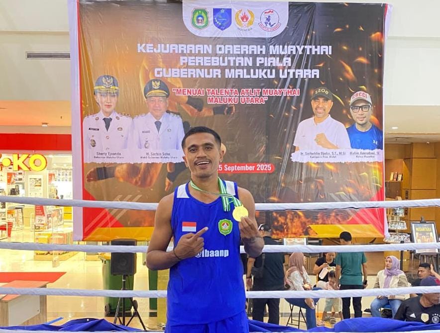 Tandaseru — Pemuda asal desa Saria, Kabupaten Halmahera Barat, Zulfiqra Samsudin, sukses mengharumkan nama Kota Tidore Kepulauan setelah meraih juara pertama pada Kejuaraan Daerah (Kejurda) Muaythai Maluku Utara 2025.
