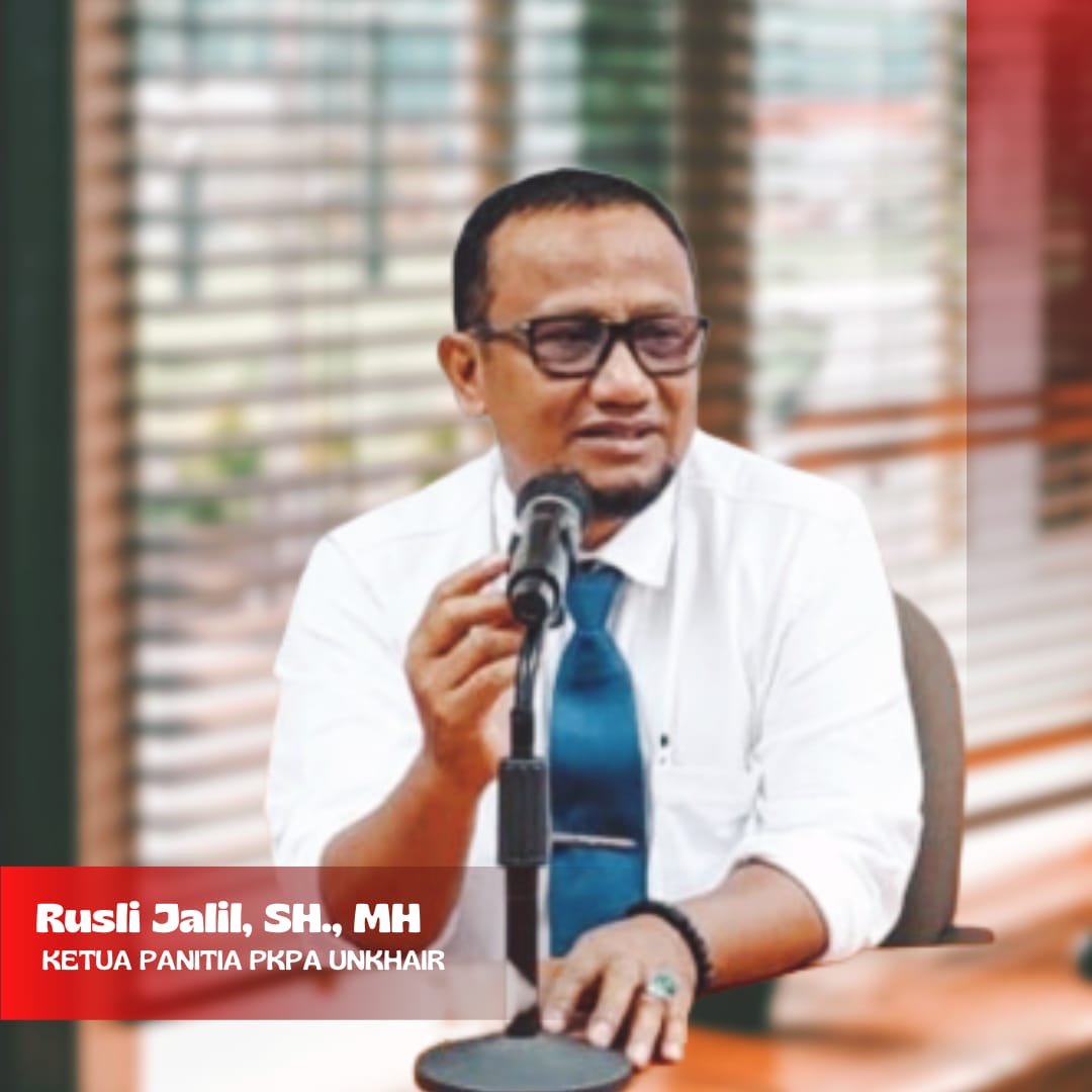 Melalui program tersebut, Ketua Panitia Pelaksana PKPA-PERADI SAI Fakultas Hukum Unkhair, Rusli Jalil, SH., MH, saat ditemui di ruang kerjanya, Jumat (3/10/2025), menyampaikan Unkhair berkomitmen mencetak advokat muda yang profesional, berintegritas, dan memiliki daya saing tinggi.