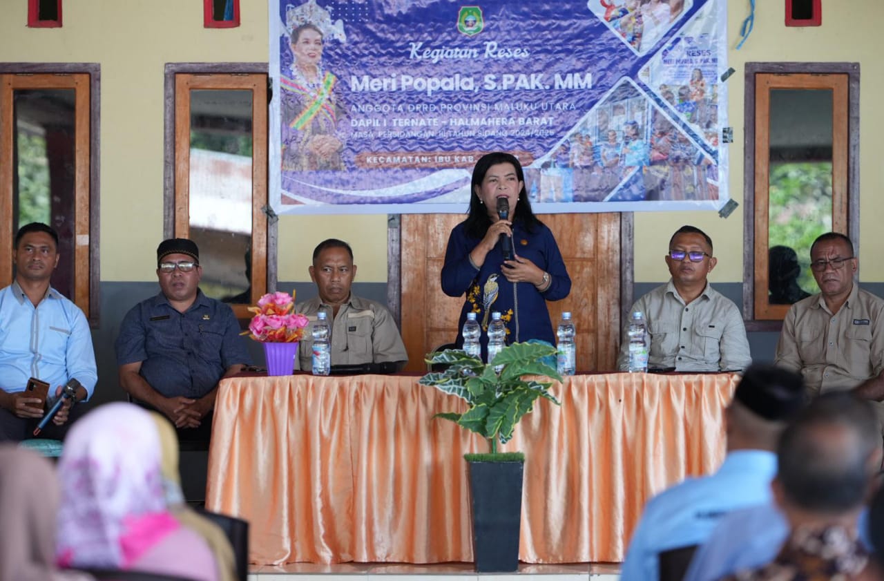 Tandaseru — Anggota DPRD Provinsi Maluku Utara, Meri Popala, mendapatkan apresiasi dari masyarakat pada agenda reses yang bertujuan menyerap aspirasi dan usulan di Kecamatan Ibu, Halmahera Barat, Sabtu (4/10/2025).
