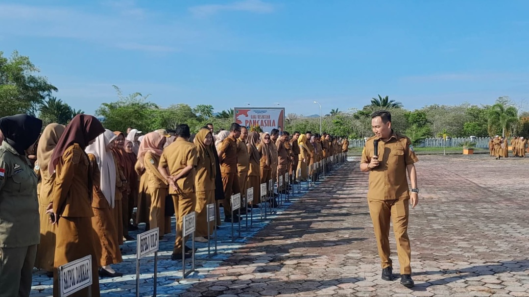 “Berikut kalau masih ada yang tidak mengikuti apel pagi, baik ASN, PNS dan PPPK, saya minta pindahkan mereka bertugas di kecamatan jauh, biar tidak perlu datang ikut apel pagi di sini,” ujarnya.