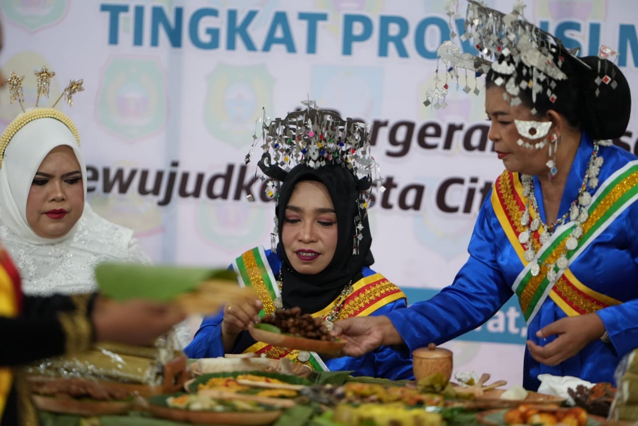 “Jadi ini budaya suku Sahu yang ada di Halmahera Barat, yang kita adopsi dan kita gelar di sini. Ini makan sukuran bersama yang disebut dengan Orom Sasadu,” jelas James.
