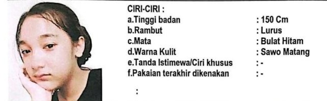 Tandaseru — Seorang siswi kelas 2 SMP Negeri 5 Tidore Kepulauan, Maluku Utara, dilaporkan hilang oleh keluarganya.